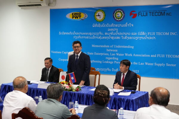 弊社は2011年よりラオス国における漏水探知器の販売を開始し、首都ビエンチャン水道公社、北部ルアンパバーン県、南部カムアン県の水道公社向けに無収水対策研修を実施してきました。これらの活動が高く評価され、全国展開を求める声が高まったことを受け、今回のMOU締結に至りました。