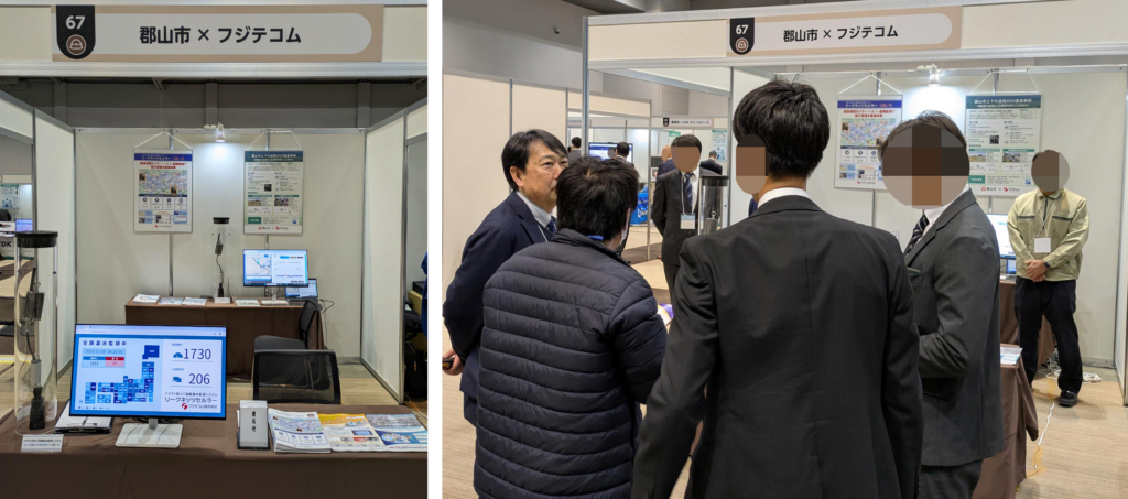 今回、福島県郡山市様と共同出展を行い、DX技術を活用した遠隔監視で漏水事故による社会的な損失を未然に防ぐことのできるクラウド型遠隔漏水監視システム「リークネッツセルラー LNL-C」と、本システムを導入いただいております郡山市上下水道局様のDX推進における取り組み(漏水検知事例)をご紹介させていただきました。
