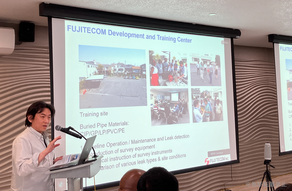 当日は、参加国の水道事業の概要や課題の紹介、国際機関による取り組みの紹介に加え、日本企業による技術プレゼンテーションが行われました。当社からは「Water Leak Detection Devices」をテーマに、漏水調査機器や漏水検知技術について紹介しました。